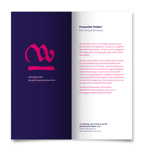 Für die Gestaltung der Kommunikationsmittel wurden wir beauftragt – und haben dem Minnesänger aus dem lustfeindlichen Mittelalter ein zeitgemäßes Outfit verpasst.
