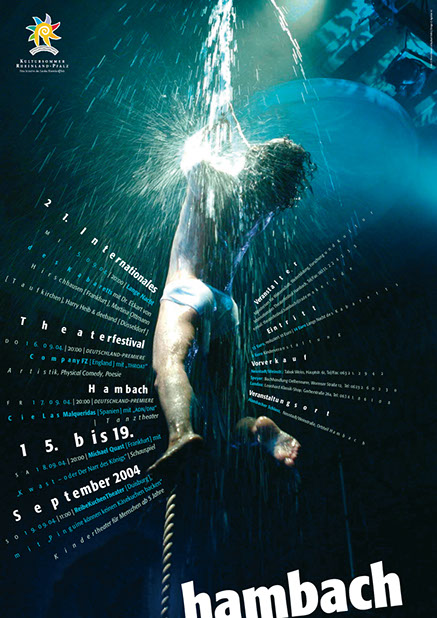 Über lange Jahre haben wir das Theaterfestival Hambach, das mit sehr viel Engagement und Herzblut von Wolfgang Rademaker und seiner Mannschaft im Auftrag des Landes Rheinland-Pfalz veranstaltet wurde, gestalterisch betreut. Die Leidenschaft und Liebe zu Theater und Schauspielkunst spiegelt sich in allen Publikationen wider.