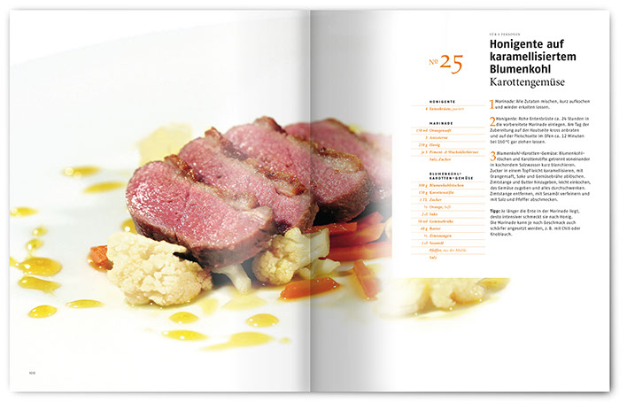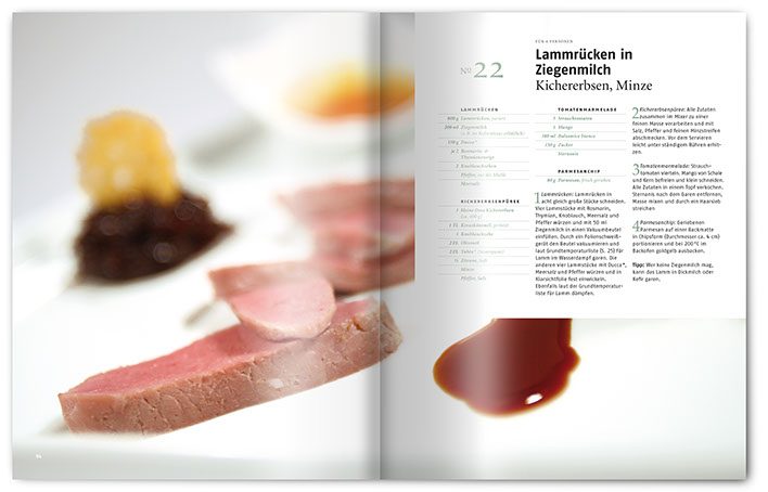 Ein Kochbuch für Gourmets, Ästheten und Bibliophile. Eindrucksvolle Rezepte und Fotos zum Sattsehen. Dazu eine raffinierte Typografie, die mit viel Liebe zum Detail dieses kulinarische Meisterwerk zum Hochgenuß werden lässt.